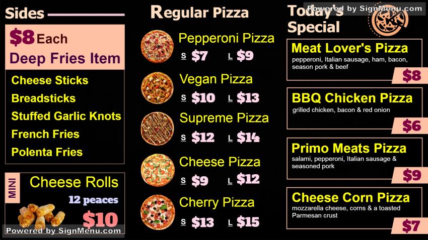 This template is best showcased on a digital menu board indoors or at the entrance of the restaurant. Digital software today has evolved to the extent wherein the restaurateur can update and monitor content from a single admin system from anywhere, anytime. This template is ready for download and use.