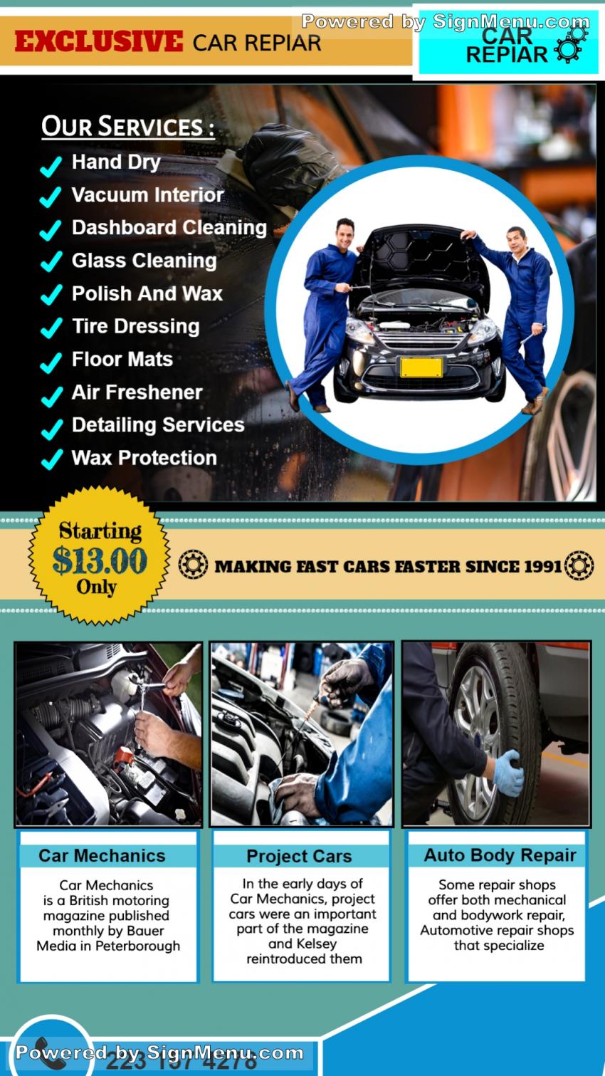 Our beautifully-designed car service board templates come with hundreds of customizable features. Every menuboard template is just a starting point — you can style it to look any way you want.