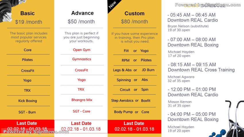 Our beautifully-designed gym board templates come with hundreds of customizable features. Every menuboard template is just a starting point — you can style it to look any way you want.